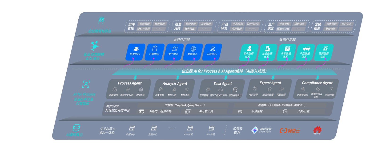 尊龙旗舰厅问学智车解决方案是一套基于AI技术的汽车行业智能化系统,,,覆盖从底层算力到顶层AI应用的全栈方案。。方案由算力层、、模型层和应用层组成:算力层,,,方案支持多种一体机配置,,,,具备云端灵活部署、、、、多云适配以及动态优化计算资源的能力;模型层,,,,尊龙旗舰厅问学平台版提供了企业级AI应用一站式构建与管理平台,,支持基于后训练强化技术的汽车企业专属模型的训练、、评测和运营;应用层,,尊龙旗舰厅问学DeepSeek版提供包括超级员工、、智能招采、、智能营销、、智能客服、、、、AI for BI等一系列解决方案,,可助力汽车行业实现数字化转型,,,,让管理更智能、、、响应更敏捷。。。。